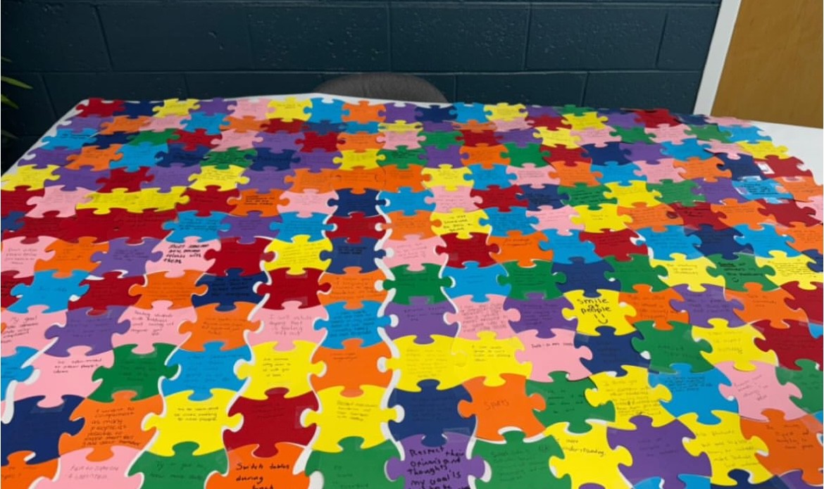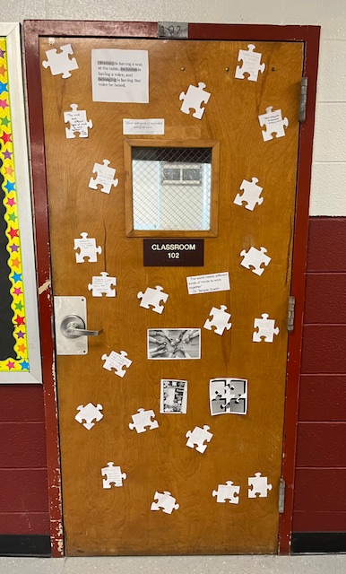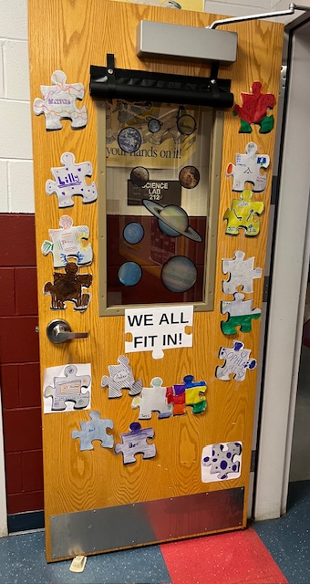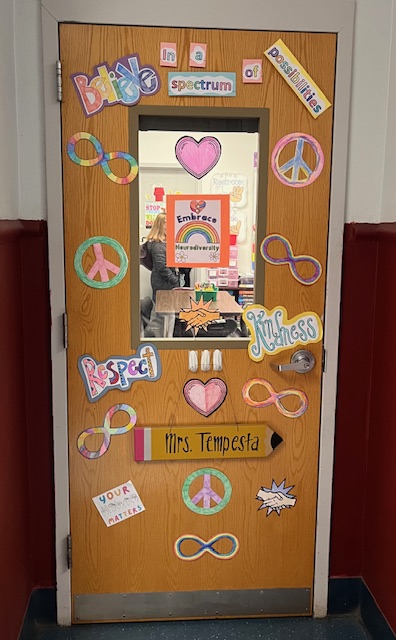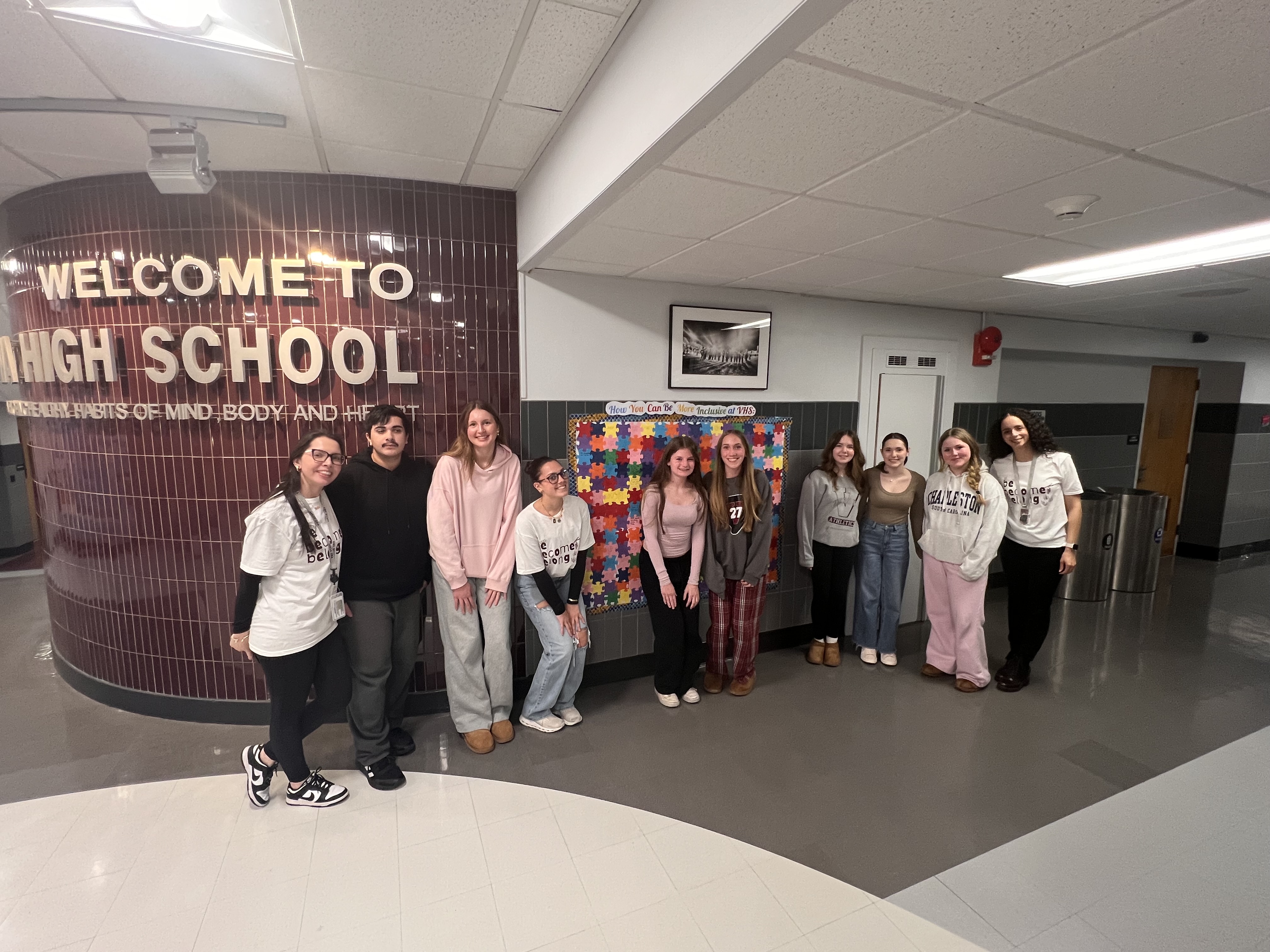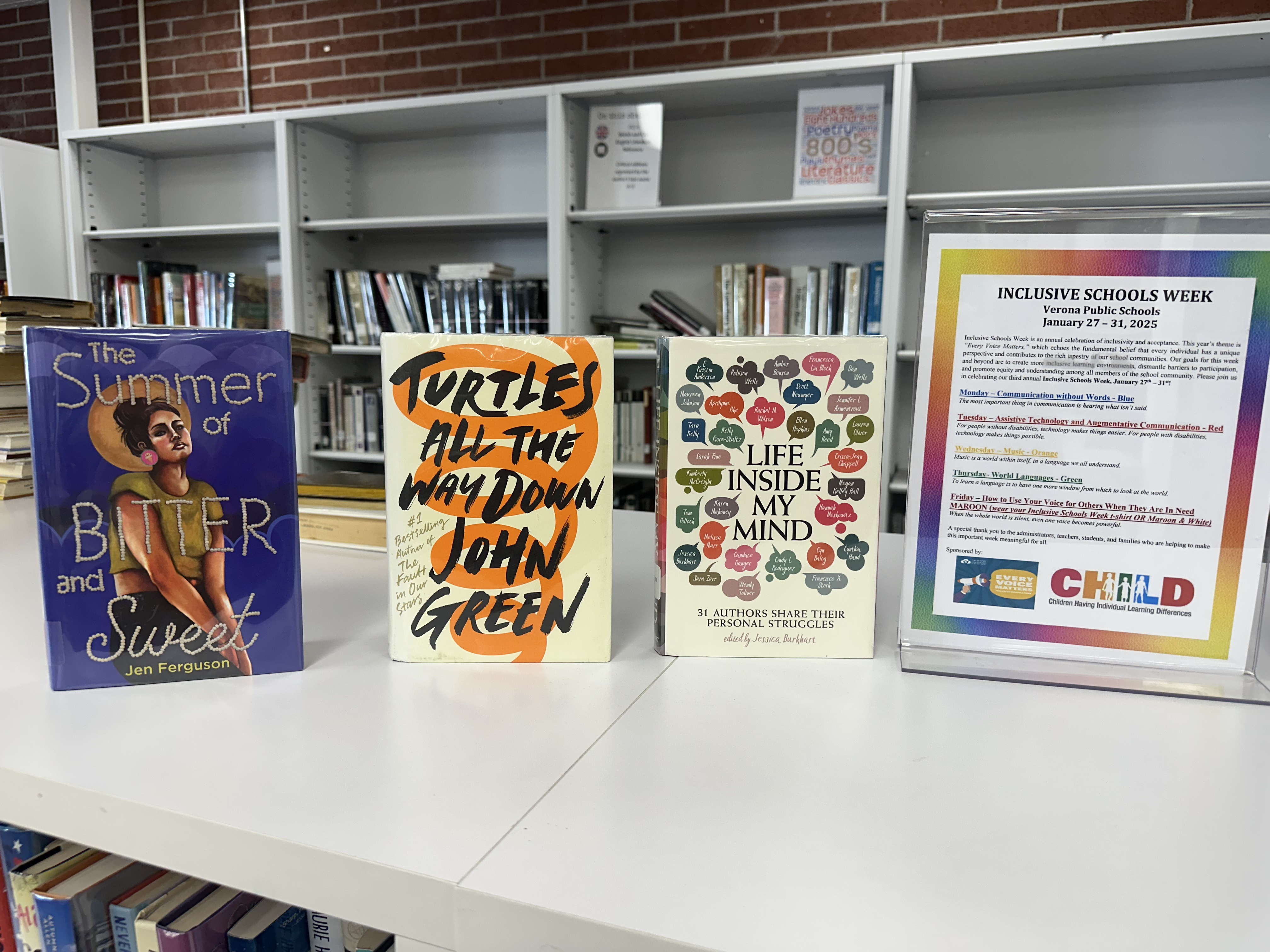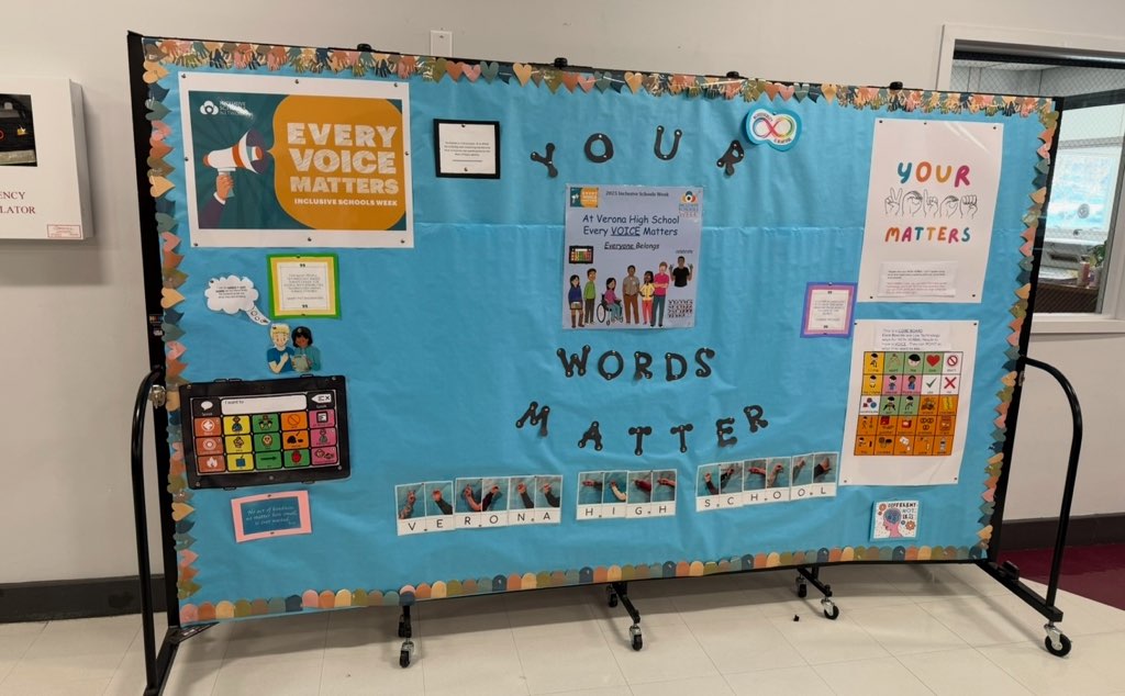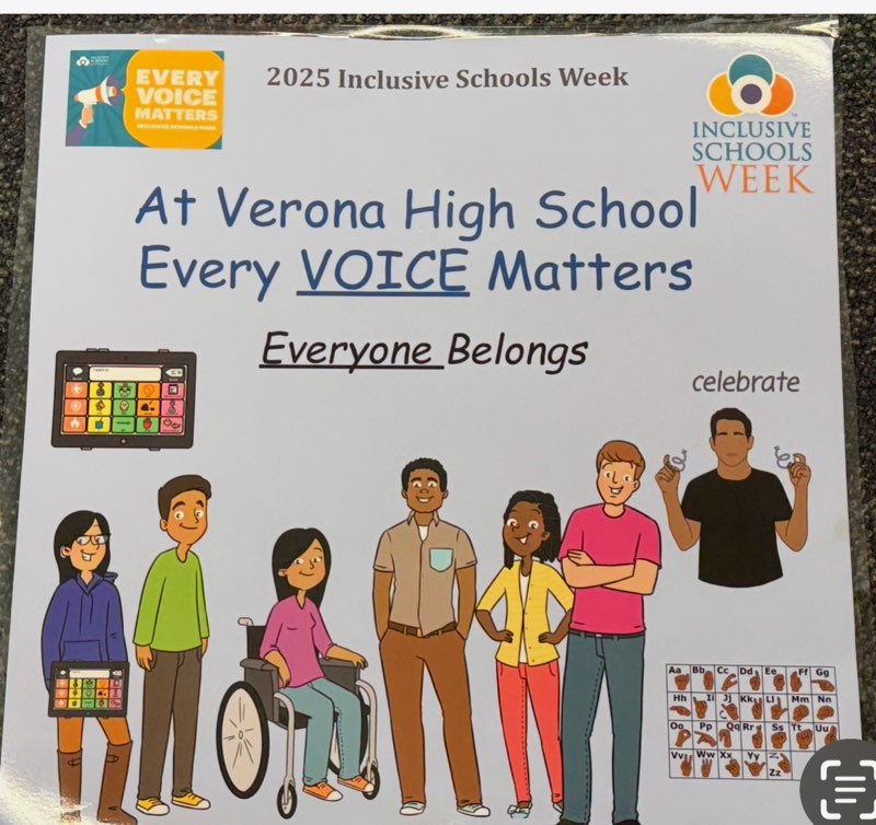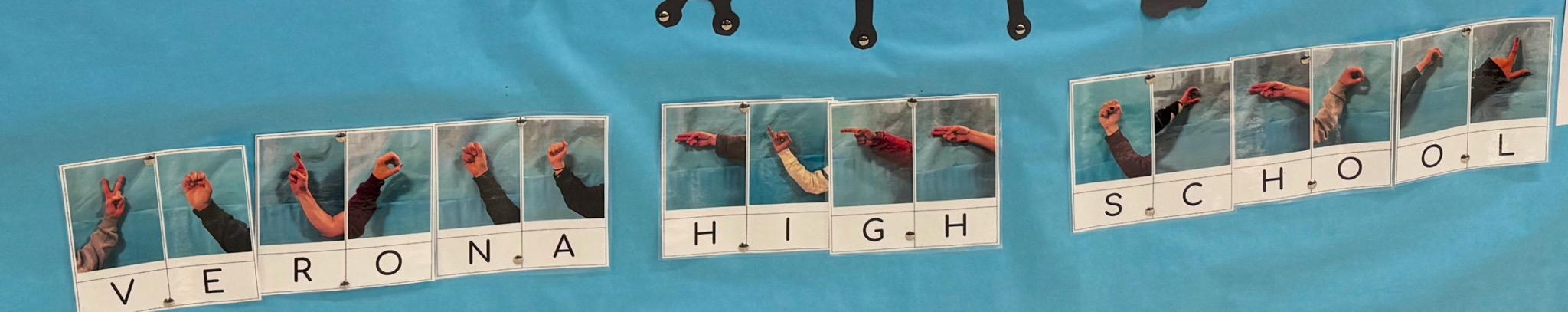 At VHS, staff and students were provided with a series of TED Talks about communication that could be used to supplement the curriculum. Ms. Thomas created a bulletin board, spelling out “Verona High School” in sign language, and VHS librarian, Kaitlyn Kelly created a display in the Learning Commons. The student-run club VHS Connect, led by Aubrey Paul and Lori Hempel, with the support of advisors, Ms. Diaz, Ms. Bayrum, and Dr. Shapiro, created and distributed puzzle pieces to VHS students during homeroom, put together a bulletin board, and held a bake sale. These activities supported their club’s mission “to bridge the gap between neurodivergent and neurotypical students, fostering a community where everyone feels valued and included.”