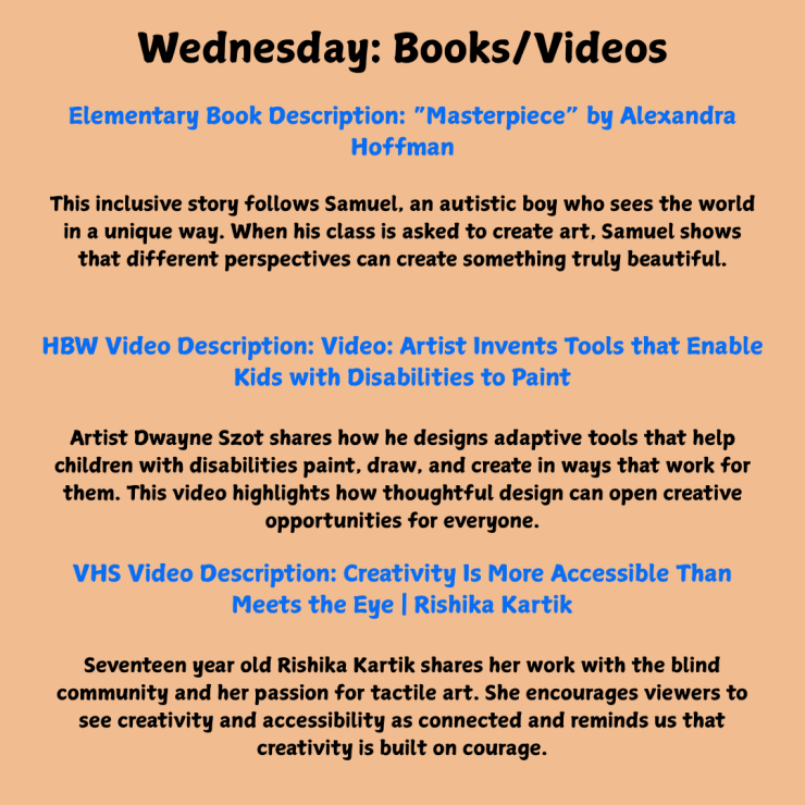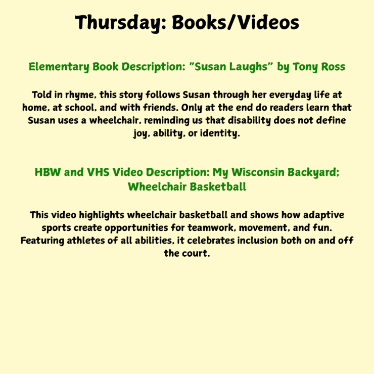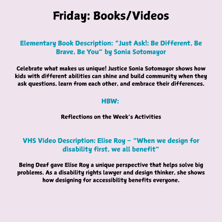 Inclusive Schools Week is an annual celebration of inclusivity and acceptance. This year’s theme was Children First: Building a Stronger Tomorrow. The guiding question was, “How can we ensure that students with disabilities are seen, heard, and valued in every aspect of school life?” In that spirit, we focused on inclusivity in the academic classroom, music, art, physical education, and the community at large.
