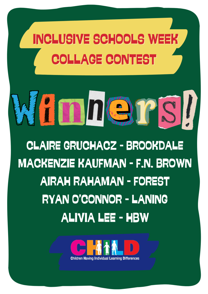 The Inclusive Schools Week Collage Contest was also a highlight. Our Board was very impressed by the hard work and creativity reflected in each submission. At our Open SEPAC Meeting on March 10th, we will recognize the winners with certificates and a monetary award. This year’s winners are Claire Gruchacz (Brookdale Avenue Elementary School), Mackenzie Kaufman (F.N. Brown Elementary School), Airah Rahaman (Forest Avenue Elementary School), Ryan O’Connor (Laning Avenue Elementary School), and Alivia Lee (H.B. Whitehorne Middle School).